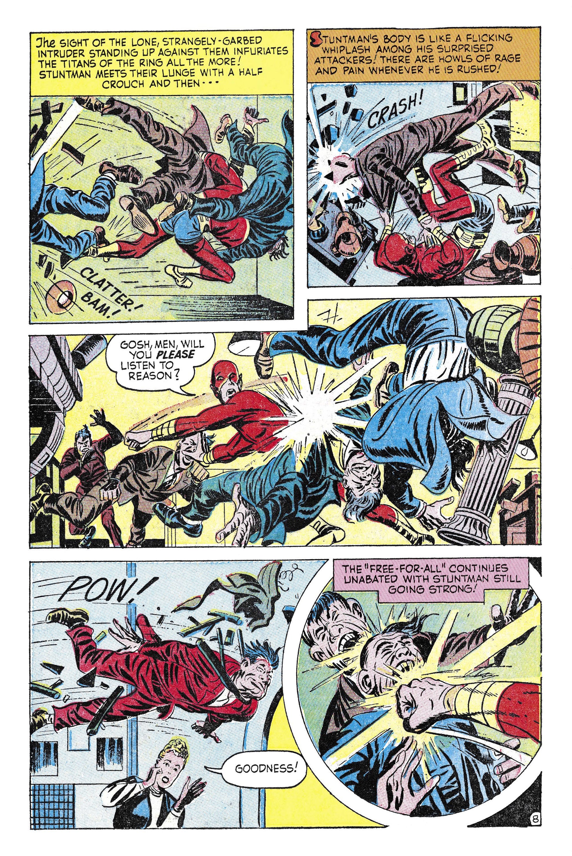 Stuntman stars in "Crime on Cauliflower Row" and "The Rescue of Robinhood" by Joe Simon and Jack Kirby.