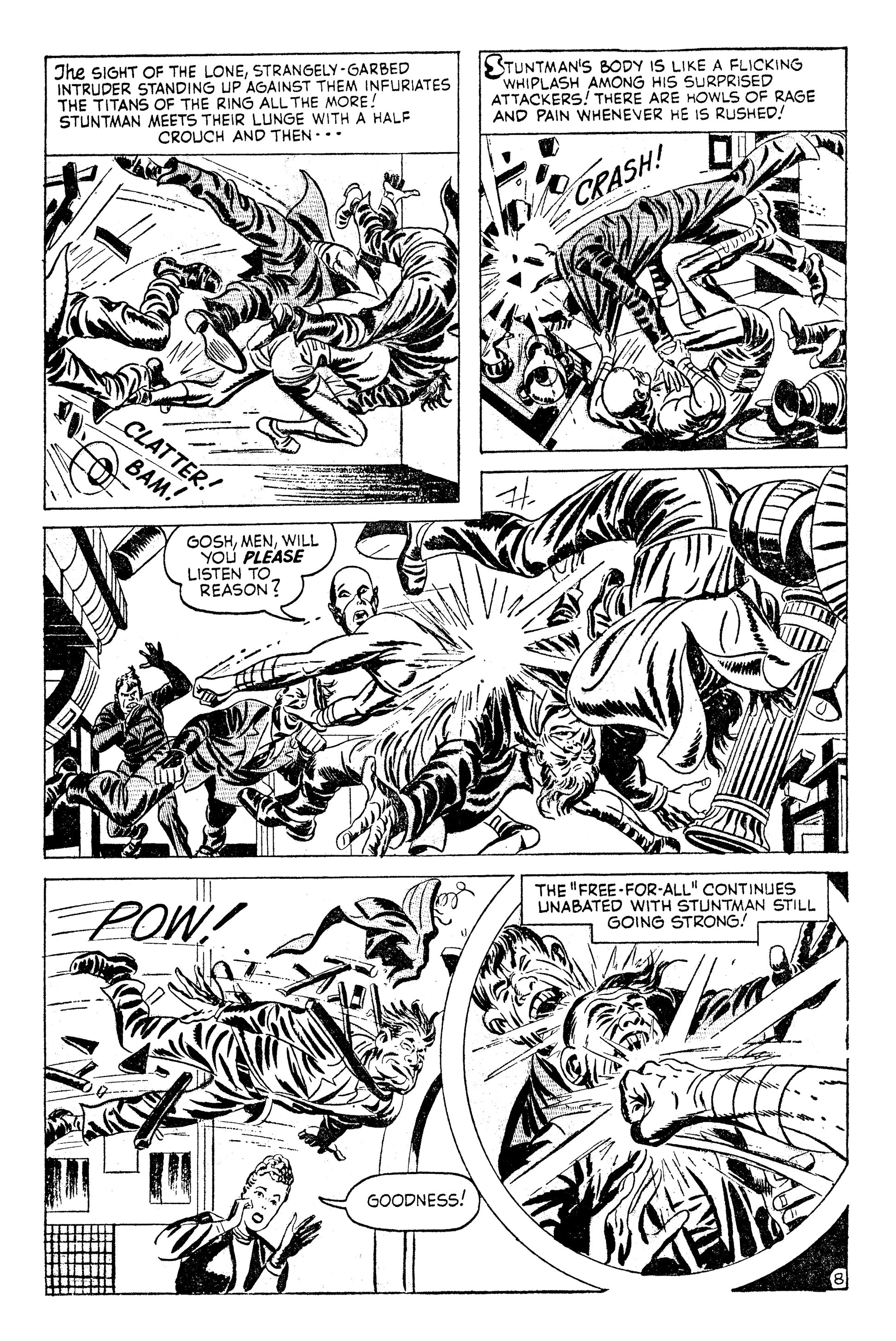 Stuntman stars in "Crime on Cauliflower Row" and "The Rescue of Robinhood" by Joe Simon and Jack Kirby.